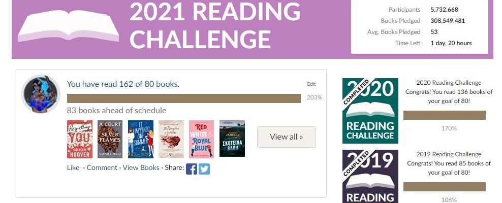 - Ο στόχος μου θα είναι και πάλι 80 βιβλία και αν δεν τα φτάσω δε θα στεναχωρηθώ κιόλας